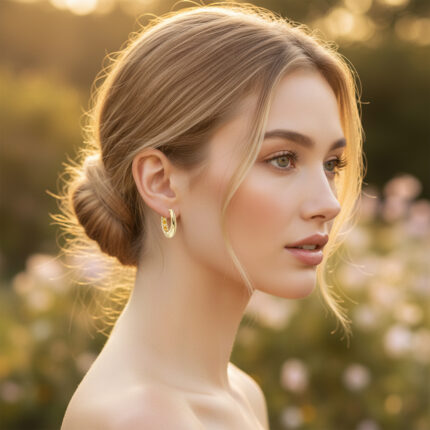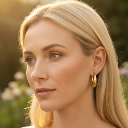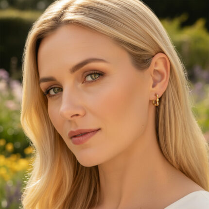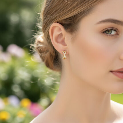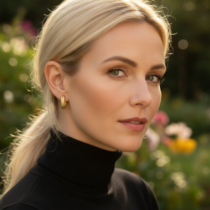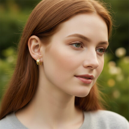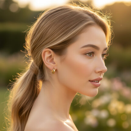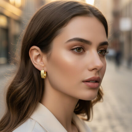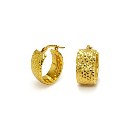 Cercei Aur 14K cu Textură Diamond-Cut, Model Lat