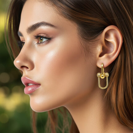 Cercei Aur 14K Formă Organică cu Detalii Rotunde