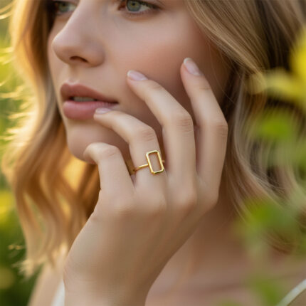 Inel Aur 14K Minimalist, Formă Dreptunghiulară