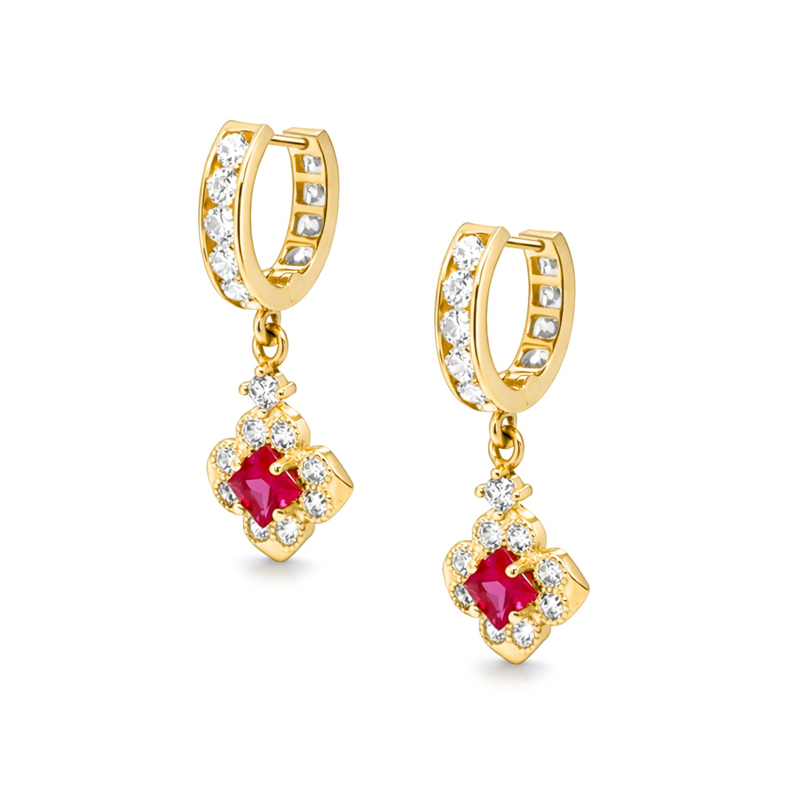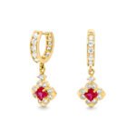 Acești cercei din aur de 14K sunt decorați cu pietre semiprețioase colorate, atent montate pentru a evidenția strălucirea și contrastul designului. Combinația dintre aurul galben și pietrele semiprețioase oferă un aspect elegant, feminin și rafinat, potrivit atât pentru ținute de zi, cât și pentru ocazii speciale.
