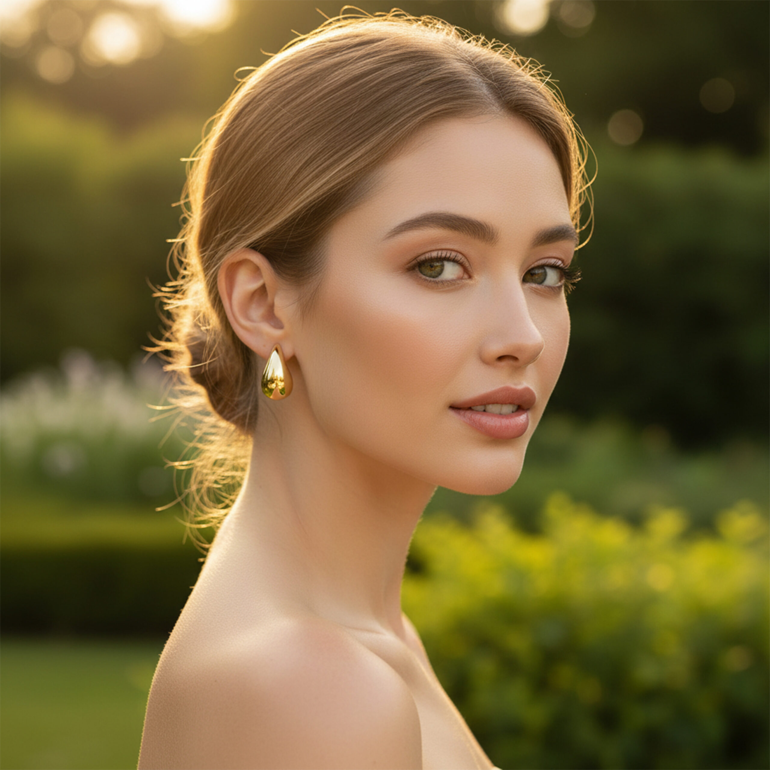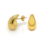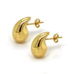 Acești cercei tip stud din aur de 14K, în formă elegantă de drop, impresionează prin liniile fluide și aspectul lor sculptural. Silueta organică pune în valoare strălucirea aurului și creează un efect modern și rafinat pe ureche. Fiind fără pietre, designul se concentrează pe simplitatea rafinată și pe formele curate.