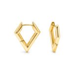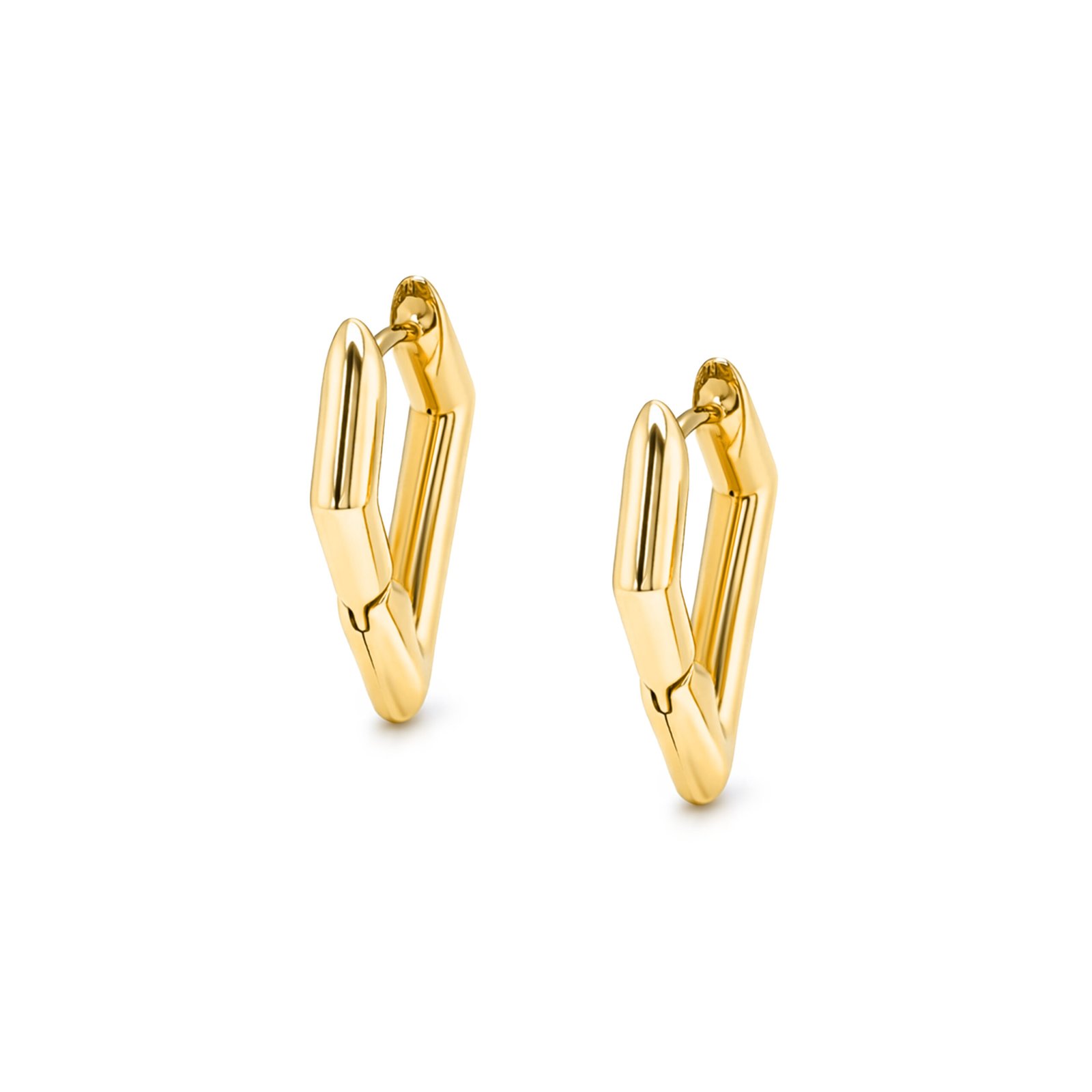 Acești cercei geometrici din aur de 14K impresionează prin liniile lor moderne și forma arhitecturală distinctă. Designul curat și luciul intens al aurului oferă un look contemporan, perfect pentru stiluri minimaliste sau ținute statement.