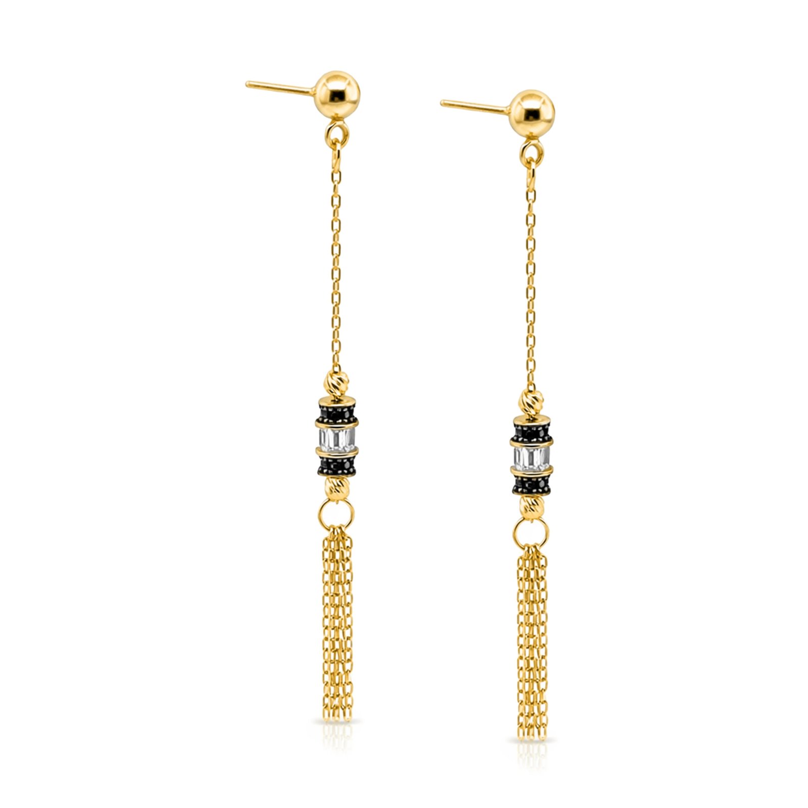 Acești cercei lungi din aur de 14K combină finețea lanțului cu detalii decorative contrastante, creând un efect elegant și dinamic. Designul lor alungit oferă mișcare delicată și rafinament, fiind ideali atât pentru purtarea zilnică, cât și pentru ocazii speciale.