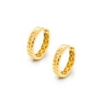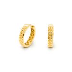 Acești cercei rotunzi din aur de 14K, decorați cu un model reliefat în formă de frunză, oferă un aspect elegant și modern. Detaliile sculptate conferă cerceilor o notă sofisticată, inspirată din lucrările realizate manual. Dimensiunea standard și forma bine definită creează un efect vizibil și stilat pe ureche.