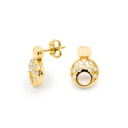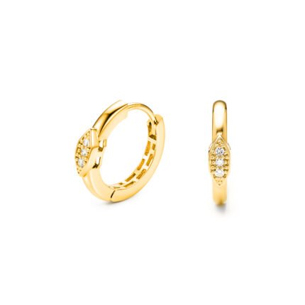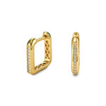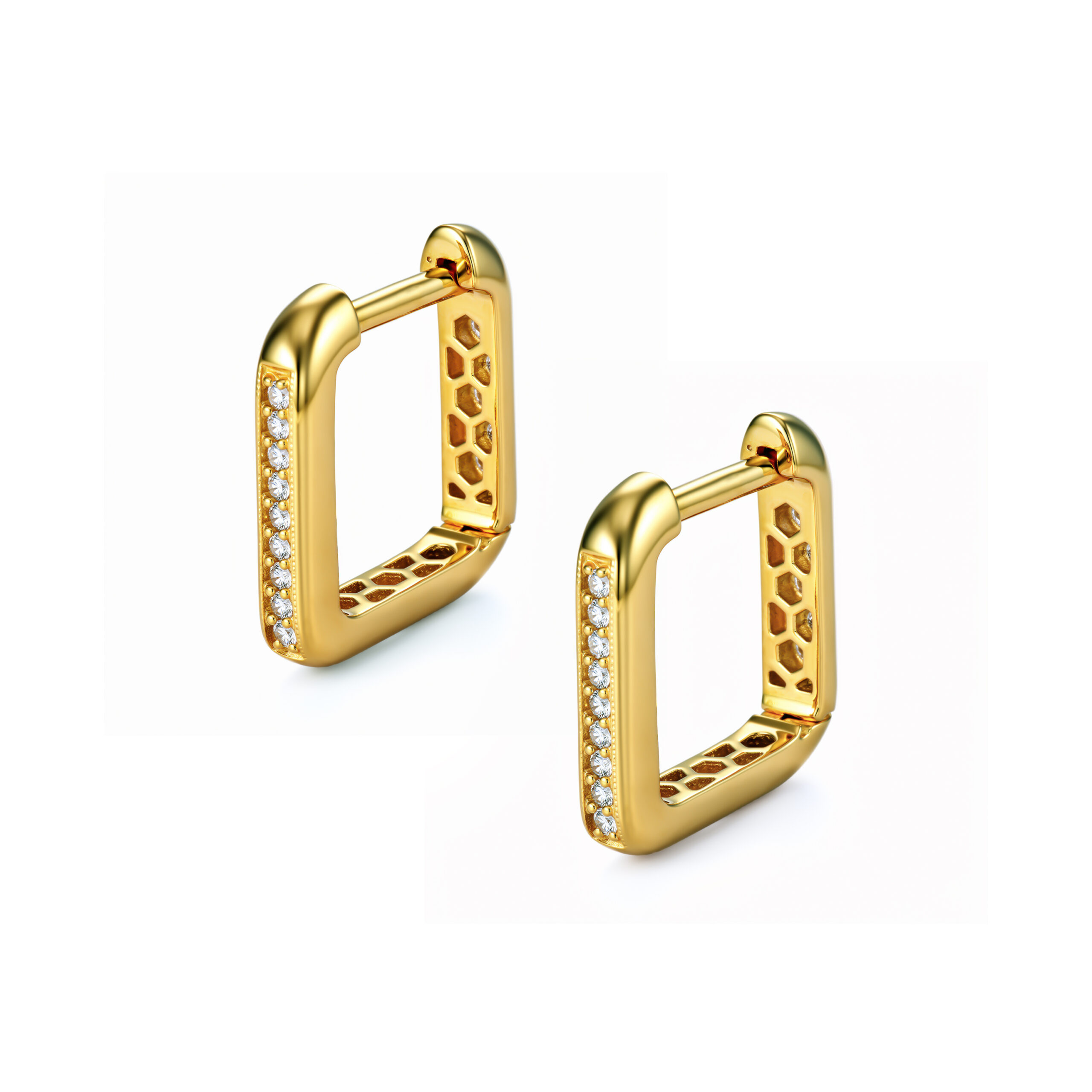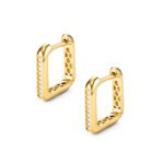 Acești cercei rotunzi din aur de 14K impresionează prin designul lor modern cu profil pătrat și linia elegantă de pietre semiprețioase montate frontal. Forma geometrică oferă un stil contemporan, iar strălucirea discretă îi face ideali atât pentru purtare zilnică, cât și pentru evenimente speciale. Interiorul cu structură tip fagure reduce greutatea și asigură un confort excelent, menținând în același timp durabilitatea și finisajul premium. O piesă rafinată pentru iubitoarele de cercei rotunzi cu detalii moderne.