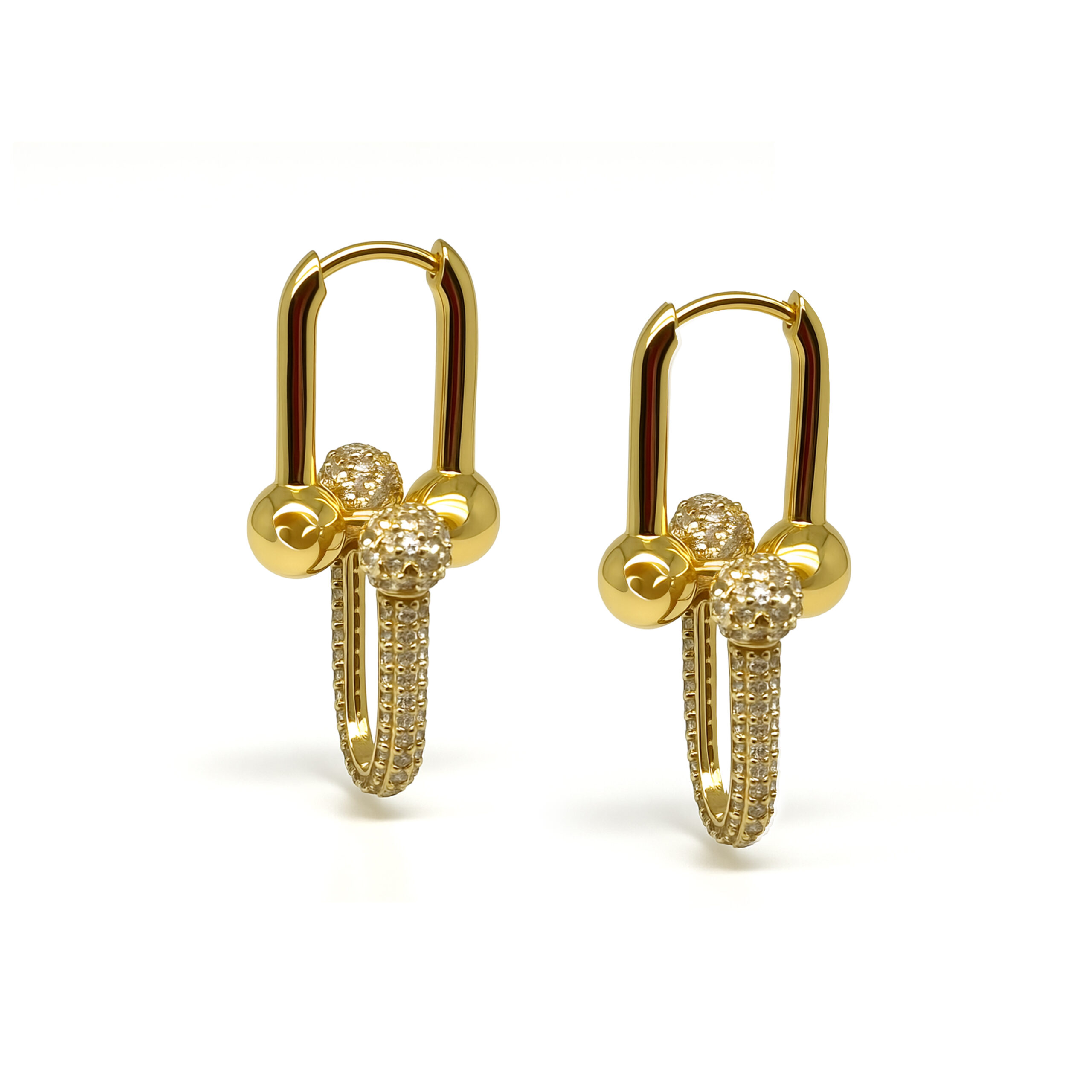 Cerceii Aur 14K Zale Eleganți atrag privirile prin designul lor modern, inspirat din forme geometrice și detalii fine. Realizați integral din aur autentic 14K, modelul combină structura tip zale cu bile decorative și suprafețe pavate cu pietre strălucitoare, oferind o luminozitate spectaculoasă la fiecare mișcare. Pietrele de zirconiu sunt montate cu precizie, conferind un efect luxuriant fără a compromite confortul zilnic. Perfecti pentru ținute elegante, casual sau de seară, acești cercei reprezintă o piesă statement ideală pentru femeile care adoră bijuteriile moderne și rafinate.