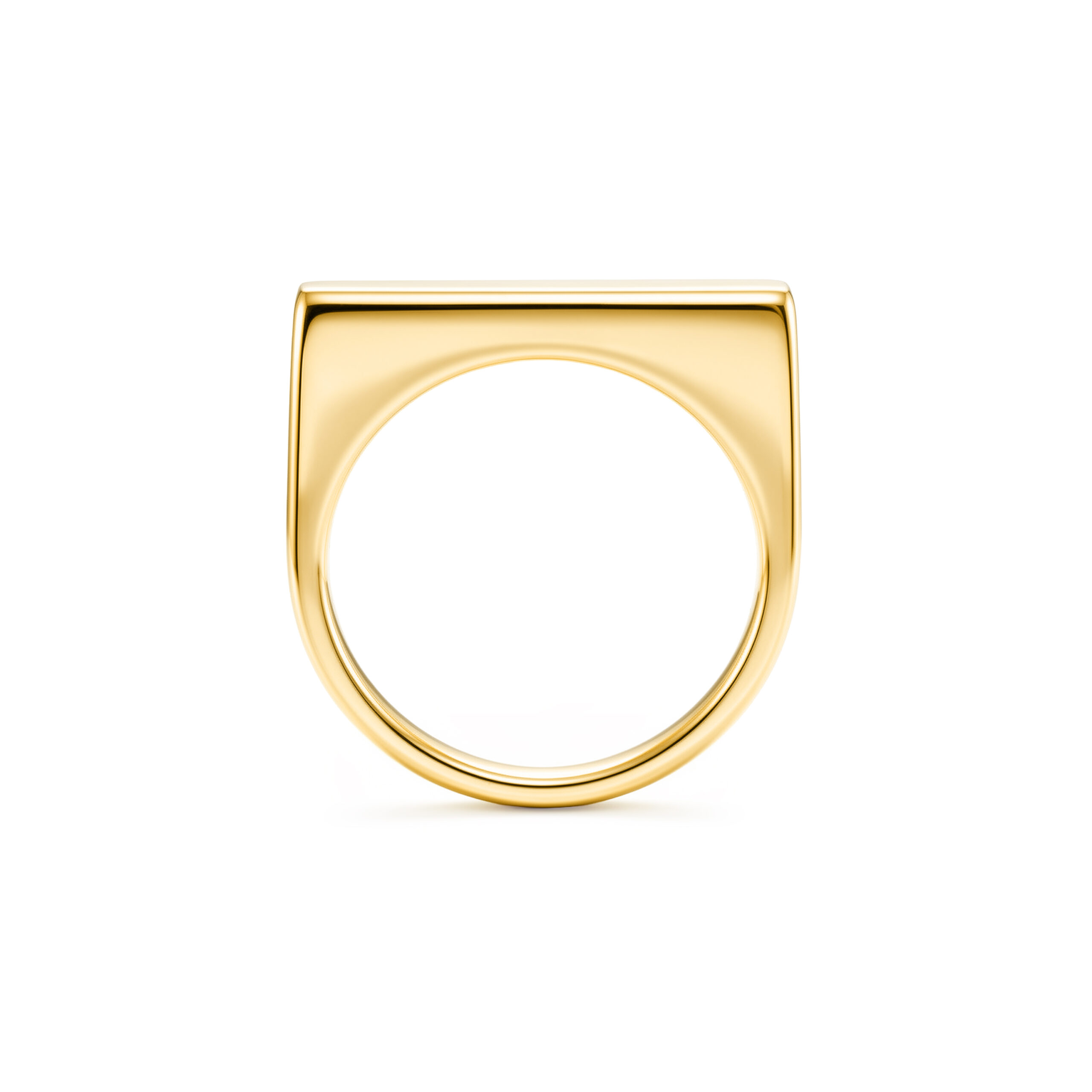 Acest inel modern din aur de 14K se remarcă prin liniile sale drepte și silueta geometrică distinctă, oferind un look arhitectural și