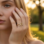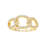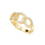 Strălucirea caldă a aurului se combină cu reflexiile pietrelor, transformând această piesă într-o bijuterie statement, rafinată și versatilă.