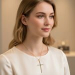 Medalion din aur 14K cu design alungit în formă de cruce, decorat cu pietre semiprețioase montate alternativ pentru un efect vizual modern și rafinat. Model expresiv, potrivit pentru persoanele care preferă bijuterii cu personalitate și simbolism.