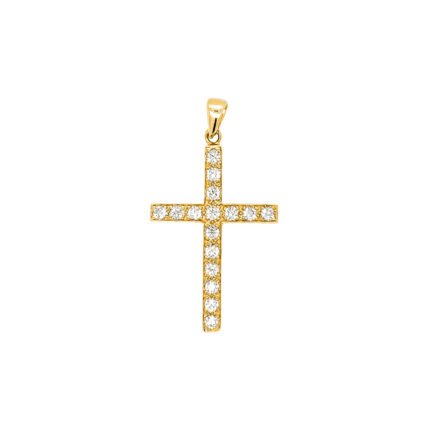 Pandantiv Aur 14K Cruce Lungă cu Pietre
