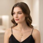 Pandantiv Aur 14K Cruce Modernă Fluidă