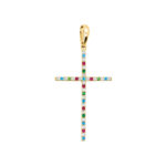 Pandantiv din aur 14K realizat în formă de cruce, cu design expresiv și proporții echilibrate. Modelul include pietre semiprețioase montate atent pentru un plus de eleganță. O piesă simbolică, potrivită pentru purtare zilnică sau cadou special.