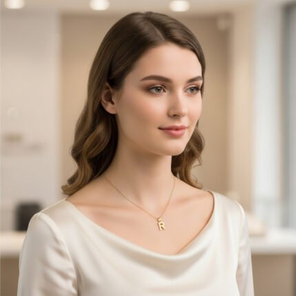 Pandantiv din aur 14K în formă de literă stilizată, cu design echilibrat și finisaj elegant. Decorat cu pietre semiprețioase montate atent. O piesă versatilă și delicată.