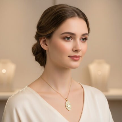 Pandantiv din aur 14K realizat într-un design floral modern, cu linii curbe și proporții armonioase. Modelul include pietre semiprețioase montate discret pentru un plus de strălucire. O piesă elegantă și feminină, potrivită pentru purtare zilnică.